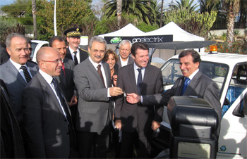 Lors du salon Autobiomobile, qui s’est déroulé fin octobre à Nice, le Sénateur Louis Nègre, Maire de la ville Cagnes-Sur-Mer dans les Alpes Maritimes, a reçu officiellement les clés de son Piaggio électrique flambant neuf sous les yeux du ministre de l’industrie Monsieur Christian Estrosi,du Président du Conseil Général M. Eric Ciotti et du Député M. Lionel Lucas.