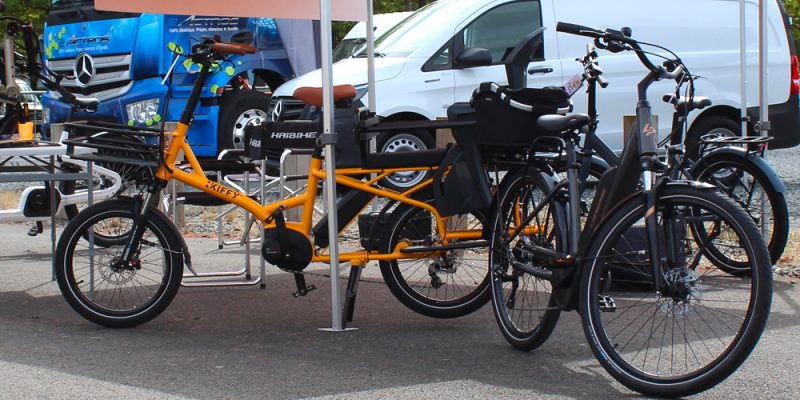 Le premier prototype présenté lors d’eBikeTec est animé par une motorisation Suntour 36V et associe un moteur électrique logé dans la roue avant à une batterie lithium située sur le porte-bagage.