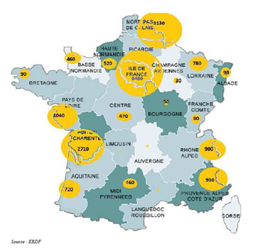 Aujourd’hui, ERDF estime à 14.000 le nombre de bornes installées par les collectivités d’ici fin 2015 (carte ci-contre) alors que le plan précédent, annoncé en 2009 par Jean-Louis Borloo, en prévoyait 60.000.