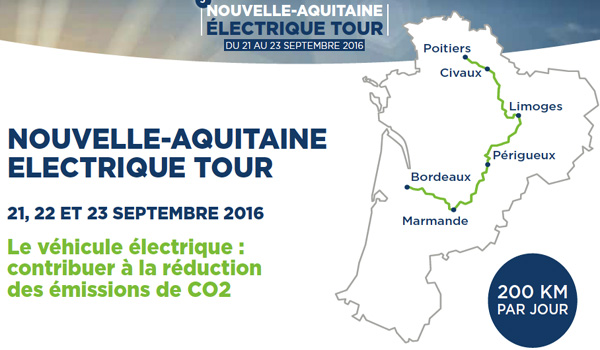 Le Nouvelle-Aquitaine électrique Tour, qui se déroulera du 21 au 23 septembre 2016, s’annonce particulièrement intéressant, car accompagnant l’évolution technologique des véhicules branchés et militant pour le déploiement des bornes de recharge des batteries avec l’indispensable interopérabilité des réseaux. Le déplacement vaut la peine, qu’il s’agisse de suivre le parcours imaginé par Jean-François Villeret et son équipe de Tour véhicules électriques ou plus librement de découvrir tous les événements qui complètent la manifestation.