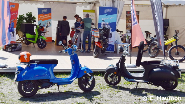 Comme chaque année, les deux-roues ont occupé une large place sur la partie extérieure du Salon du Véhicule Electrique de Val d’Isère. Si les VAE et les VTT à Assistance Electrique sont toujours très dominants, les scooters électriques ont réalisé une belle percée cette année et ont été très en vue à l’instar du Pink Style qui, même s’il ne pétarade pas et est totalement silencieux, a fortement attiré l’attention avec son look vintage, aussi bien sur le stand de Pink Mobility que dans les rues de la station où les gens se retournaient sur son passage lors des nombreux essais réalisés par les visiteurs du salon. Un attrait qui augure bien de l’avenir de ce nouveau scooter qui vient à peine d’être lancé sur le marché. Pink Mobility dispose également d’un autre atout maître pour se développer, avec le Pink up conçu pour le marché de la livraison professionnelle.
