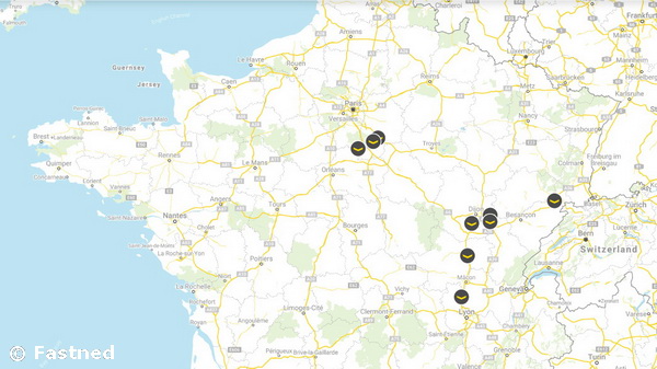 Le contrat avec APRR prévoit la construction de 9 stations sur les aires de services des autoroutes menant de Paris à Lyon, sur la route de la Suisse et autour de Dijon. Plus précisément, trois devraient être implantées au Sud de Paris sur l’A5 et l’A6, une vers Montbéliard sur l’A36, deux autres sur l’A6 au Nord de Lyon et de Mâcon, et les trois dernières autour de Dijon sur l’A31 et sur l’A39. Sur chaque site, Fastned prévoit d’implanter une grande station capable de recharger jusqu’à 16 véhicules simultanément. De quoi permettre à des centaines de voitures par jour de se recharger dans chacune des stations.