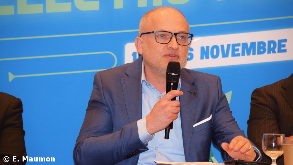 Didier Lainé a commencé par présenter les résultats d’une étude de RTE sur les futurs énergétiques à l’horizon 2050. Selon la Stratégie Nationale Bas Carbone, la consommation d’énergie finale en France devrait baisser de 40%. Pour y parvenir, RTE a construit six scénarios de mix énergétique, avec ou sans nouveau réacteur nucléaire. Des scénarios montrant tous qu’il faudra passer à la vitesse supérieure dans la réduction de la consommation d’énergie. Après l’avoir transporté dans le futur, Didier Lainé a ramené l’auditoire à la réalité du moment. Avec déjà une certitude, la consommation des véhicules électriques ne mettra pas en péril le système électrique cet hiver. Elle ne représente en effet qu’environ 0,2% de la consommation électrique française. Néanmoins, la situation du réseau électrique demeure tendue. RTE a donc réactivé le dispositif Ecowatt et a lancé un appel citoyen à modérer sa consommation lors des plages horaires critiques.