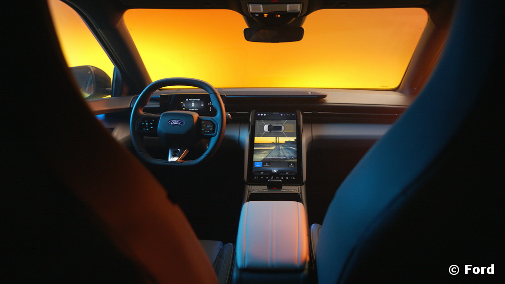 Ford a conçu l’intérieur de la nouvelle Capri pour accueillir 5 personnes dans une ambiance moderne et totalement connectée. On retrouve le nouvel écran SYNC Move de 14,6 pouces du Ford Explorer, qui peut s’incliner dans différentes positions. Il permet ainsi au conducteur de le faire glisser de haut en bas pour trouver l’angle de vision le plus confortable. Comme il pivote, il sert aussi de fermeture au compartiment appelé « My Private Locker ». Un astucieux coffre-fort personnel permettant de dissimuler de petits objets comme des clés ou un smartphone. L’habitacle se veut également particulièrement confortable avec notamment des sièges sport sur mesure avec appui-têtes intégrés pour une sensation ultra-moderne. A l’arrière, les passagers ont droit à un espace généreux aux jambes mais aussi à la tête grâce à un pavillon fuyant qui s’effile assez loin.