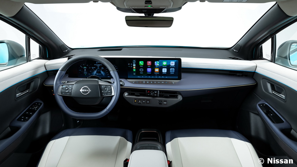 Au sein d’un habitacle spacieux et moderne, la nouvelle Leaf bénéficie de nouvelles fonctionnalités pour rendre la conduite plus sereine. Elle dispose de la technologie ProPilot Assist permettant d’anticiper les virages et d’adapter la vitesse aux limitations sur autoroute. Pour les manœuvres complexes, une vue panoramique 3D à 8 caméras permet de visualiser en temps réel l’environnement proche. L’e-Pedal Step permet aussi d’ajuster la récupération d’énergie en fonction de la circulation. Sur les deux écrans 14,3 pouces de la planche de bord, le conducteur peut accéder à d’autres fonctionnalités intuitives. Il dispose ainsi de Google built-in, une navigation via Google Maps ainsi que de l’application NissanConnect Services. Cette dernière donne accès à distance à la recharge, au pré-conditionnement de l’habitacle et à la planification de trajets. Enfin de nombreuses ADAS telles que le maintien de voie ou le système de surveillance du conducteur améliorent la sécurité.