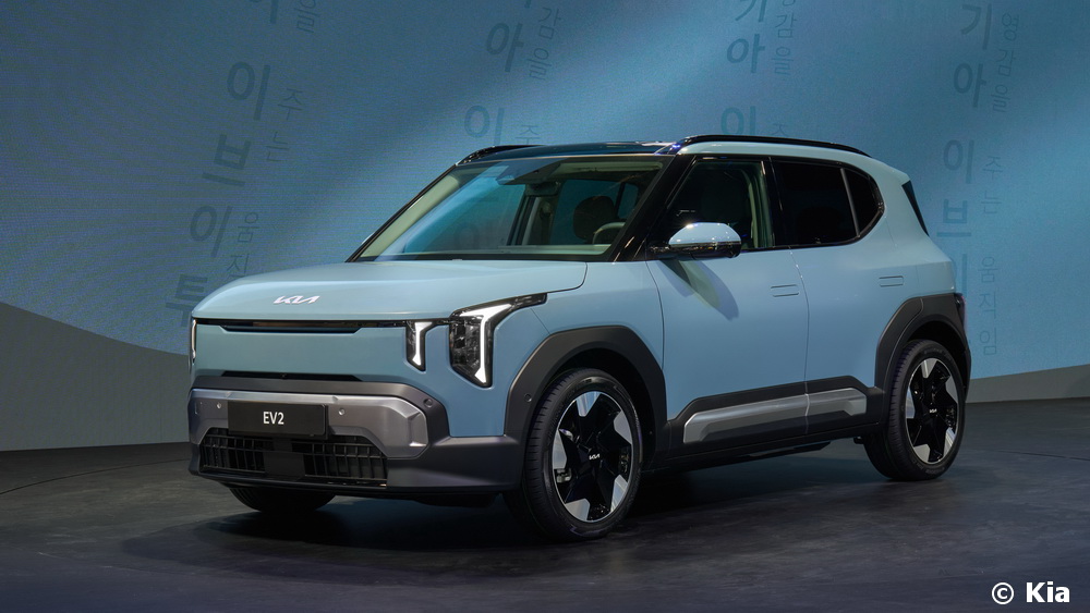 Si toutes les versions d’EV2 disposeront du même moteur de 108 kW, Kia offrira le choix entre deux batteries. La production en série débutera en février par la version standard embarquant une batterie LFP d’une capacité de 42,2 kWh. Suivra, à partir de juin, une version autonomie longue disposant d’une batterie NMC de 61 kWh. Cette dernière autorisera près de 450 km d’autonomie contre environ 320 km pour version standard. Reposant sur une architecture 400V, les deux versions acceptent une charge rapide DC. Elles permettront ainsi de passer de 10 à 80% de charge de la batterie en une trentaine de minutes. Par ailleurs, dès le lancement d’EV2, Kia proposera en option un chargeur AC 22 kW (11 kW de série). Un choix reflétant la prédominance des infrastructures de recharge AC en Europe et offrant plus de flexibilité pour la recharge.